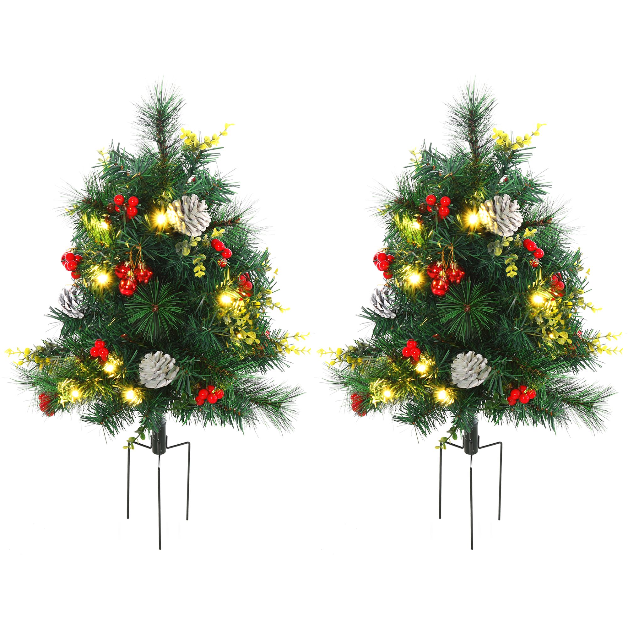 1.- Two Piece Trees: Standing 22.5" tall, our two shrub-style Christmas trees serve as the focal point of any outdoor space with pre-programmed lights and lush, full tree branches, they will be your holiday trees for years to come..