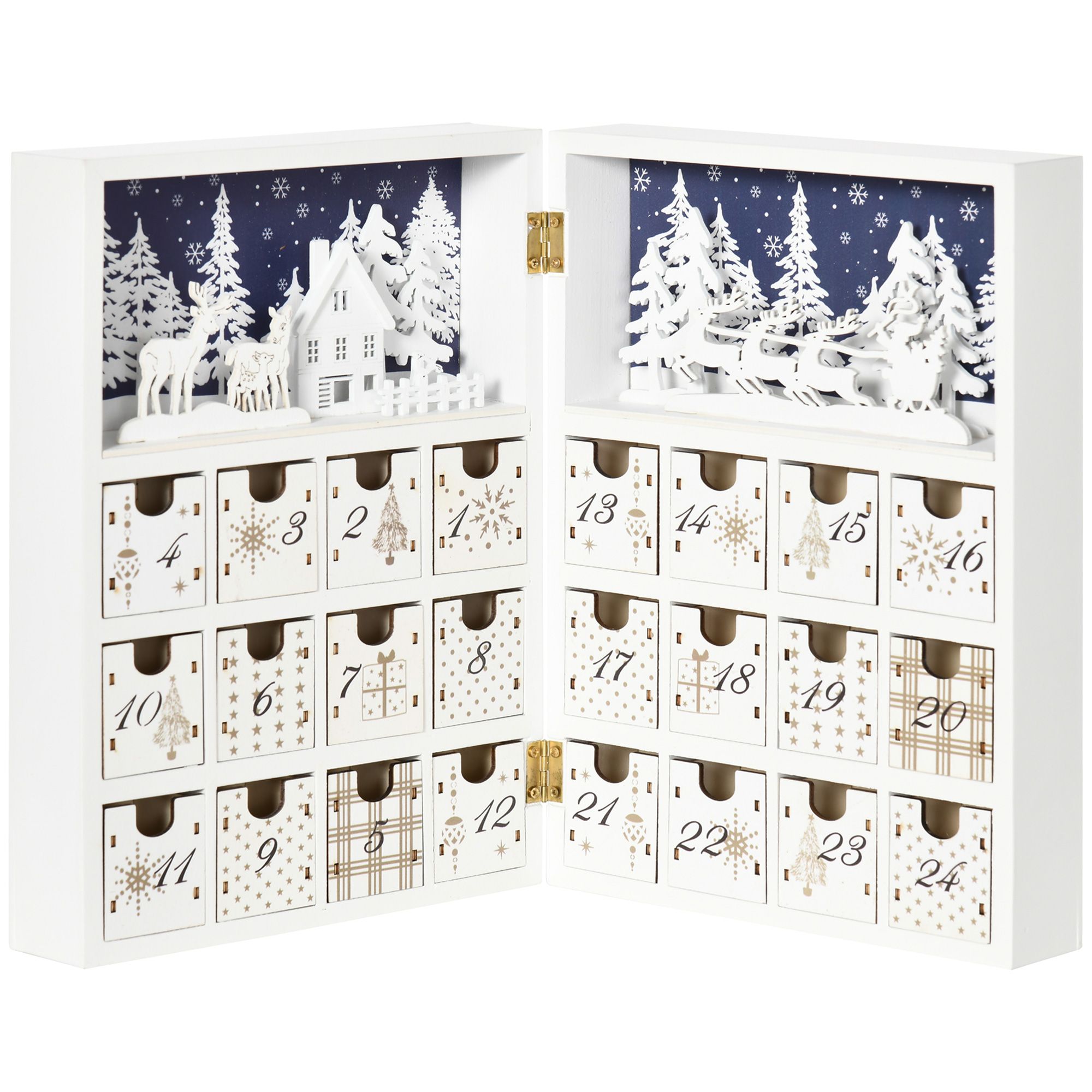 Decorate your table for the holidays with this 24 days of Christmas advent calendar from HOMCOM, which is excellent for decoration. Put notes and candies in those drawers, and allow children to open a drawer daily. They will enjoy holiday cheer and surprises every day with Christmas quickly approaching. Use this healthy advent calendar, which has healthier options inside, unlike the traditional chocolate calendar, to create year after year fun holiday.
