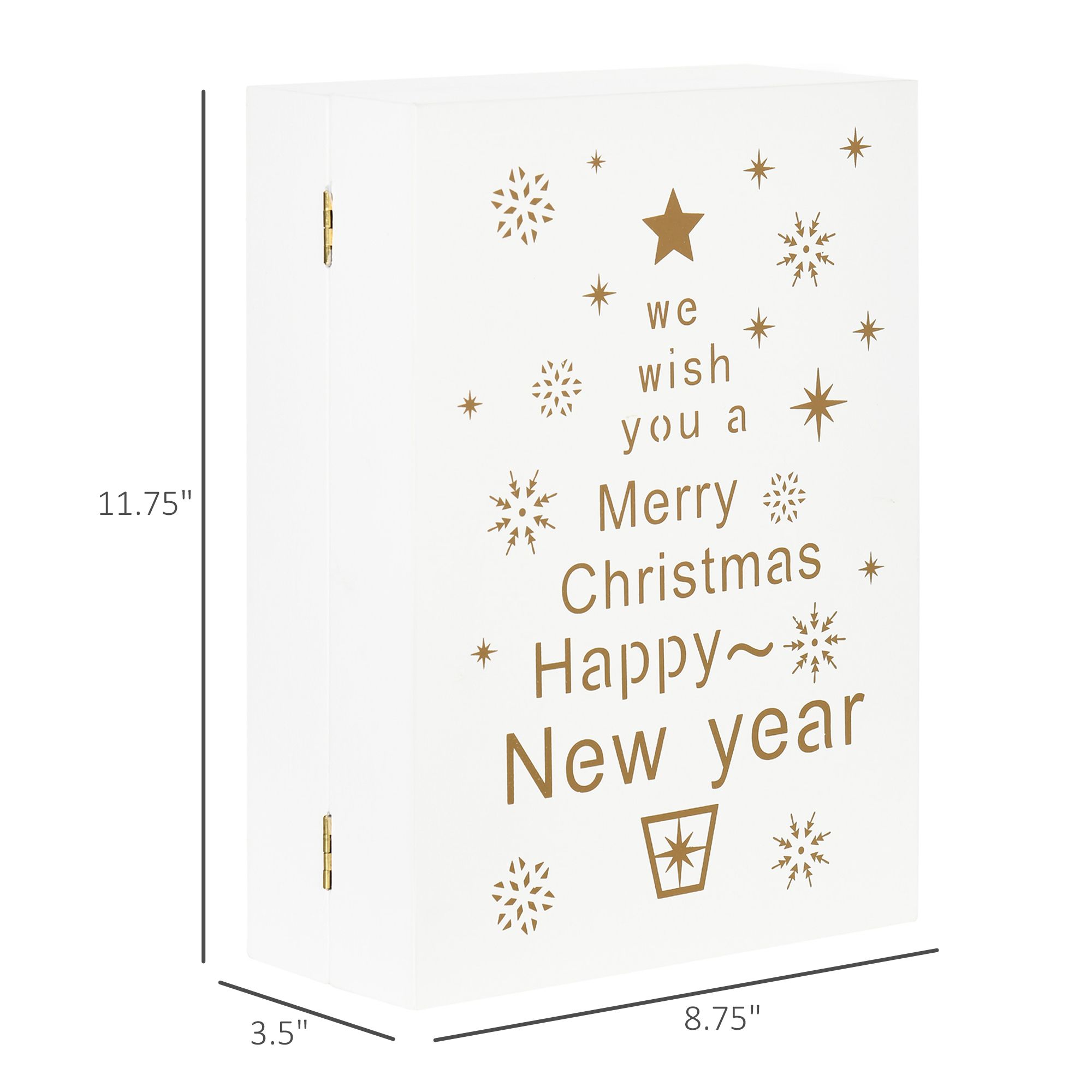 1.- Classic Christmas Theme: This wooden advent calendar in a book shape, with the words "We wish you a Merry Christmas" and "Happy New Year." It features a house, forest, reindeer, and sleigh, makes a creative way to bring Christmas cheer as home décor during the holiday season..
