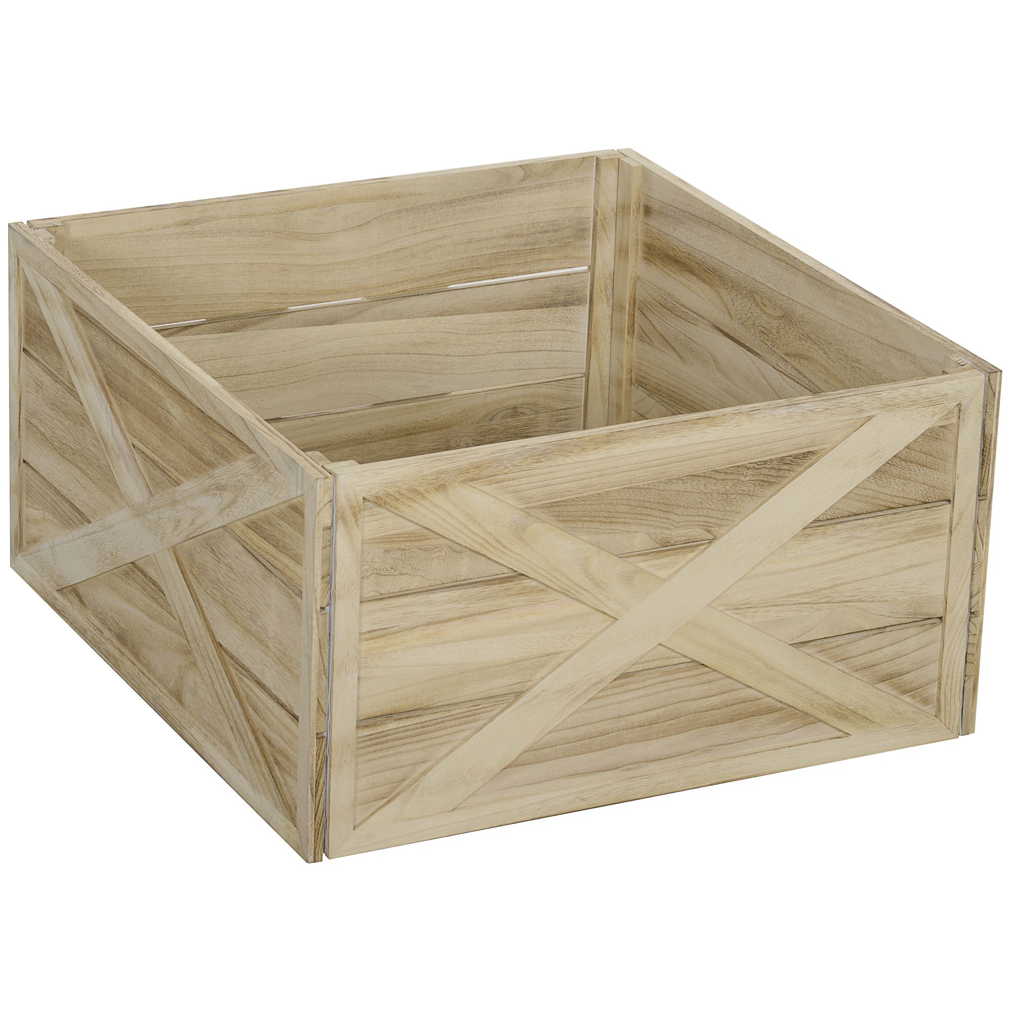 1.- Farmhouse Elegance: Capture the essence of a rustic holiday with this Christmas tree stand cover box. It features a distressed wood finish and a charming X-shaped pattern for a timeless farmhouse style..
