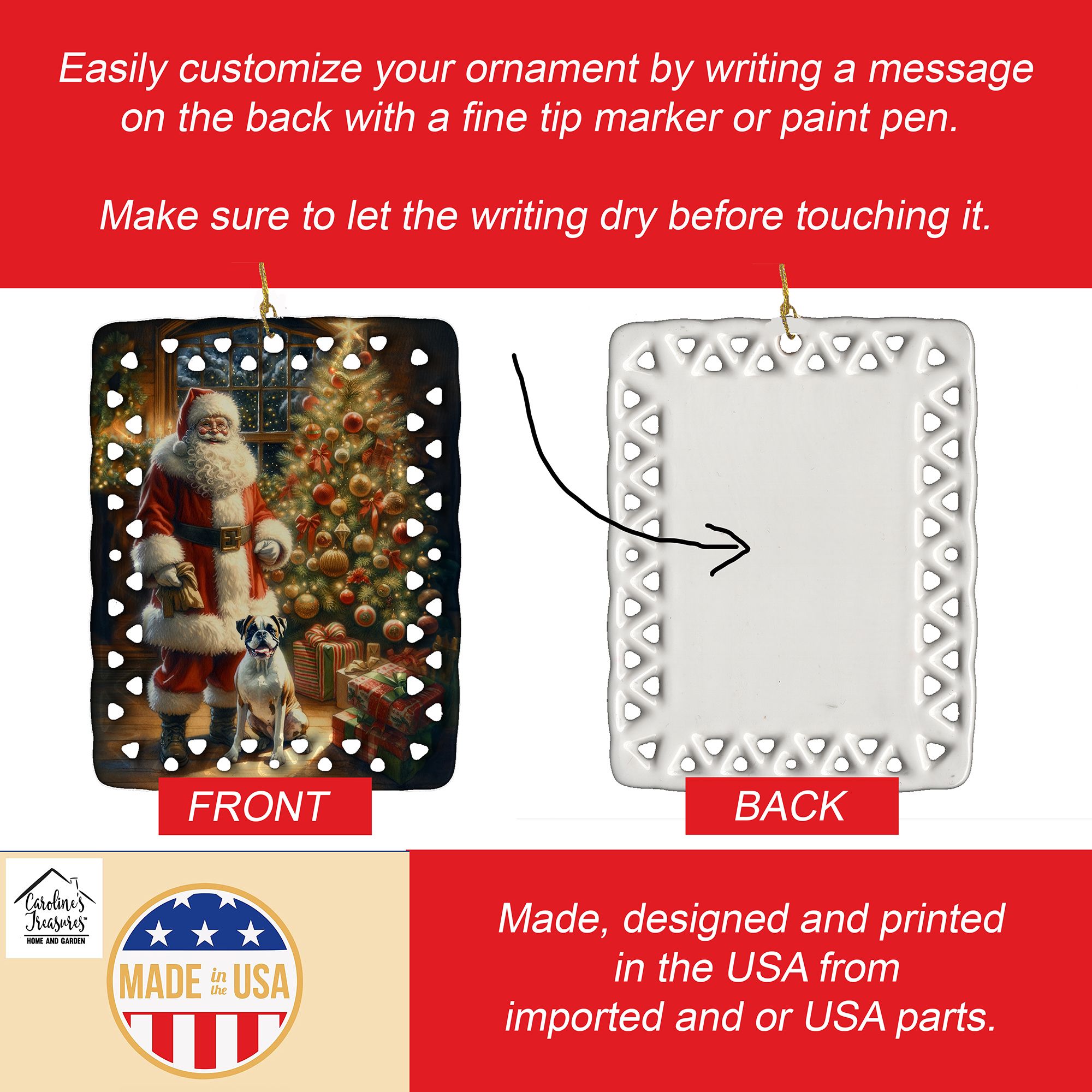 Boxer and Santa Claus Porcelain Ornament Christmas Tree Hanging Decorations for Home Christmas Holiday, Rectangle, Gift, Multicolor