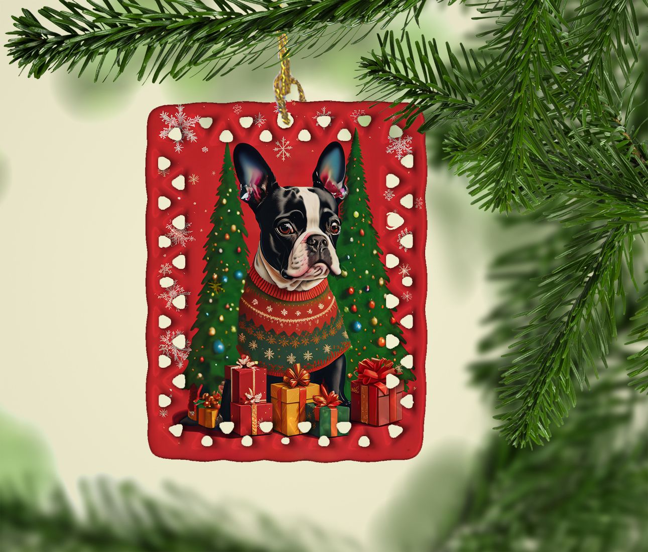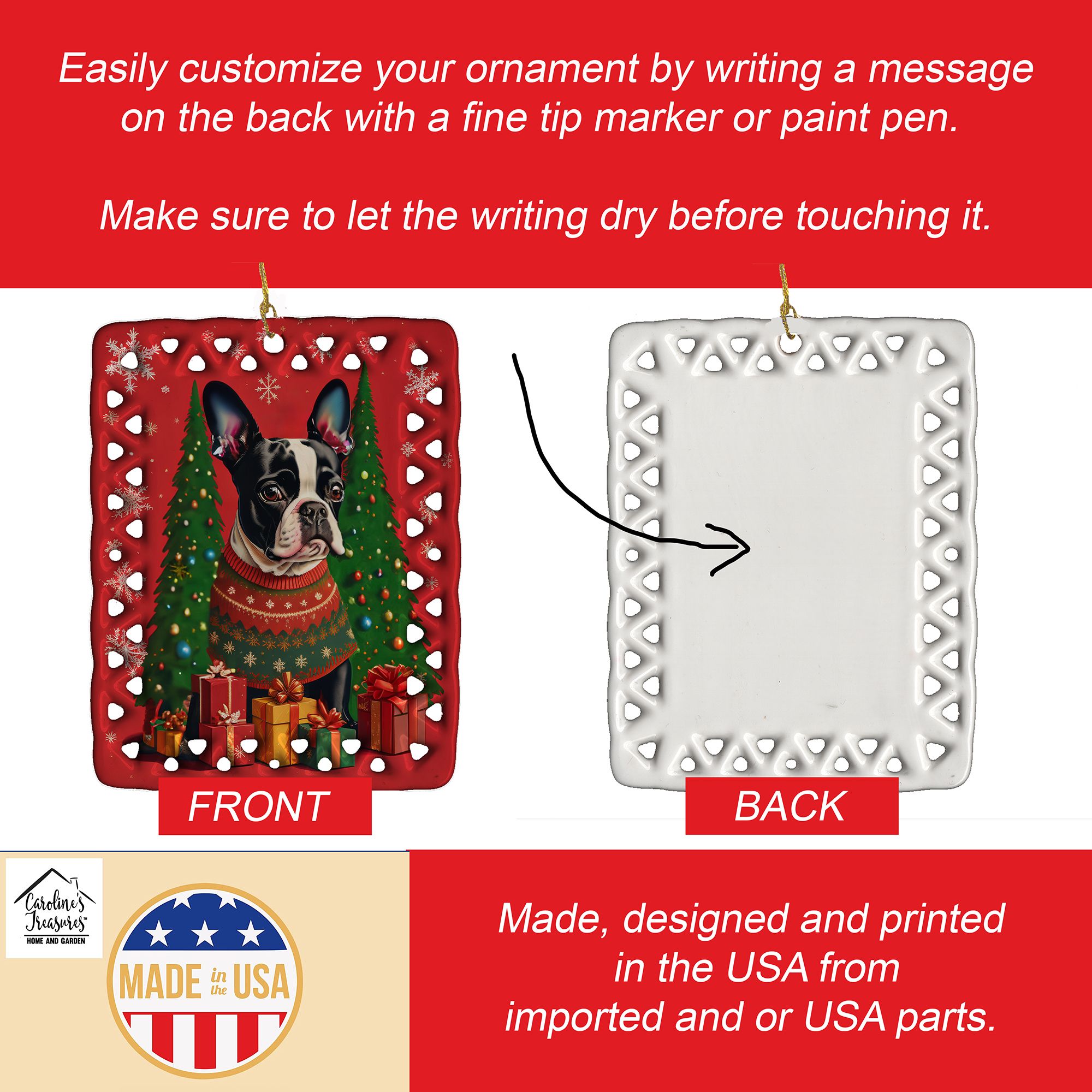 Boston Terrier Holiday Christmas Porcelain Ornament Christmas Tree Hanging Decorations for Home Christmas Holiday, Rectangle, Gift, Multicolor