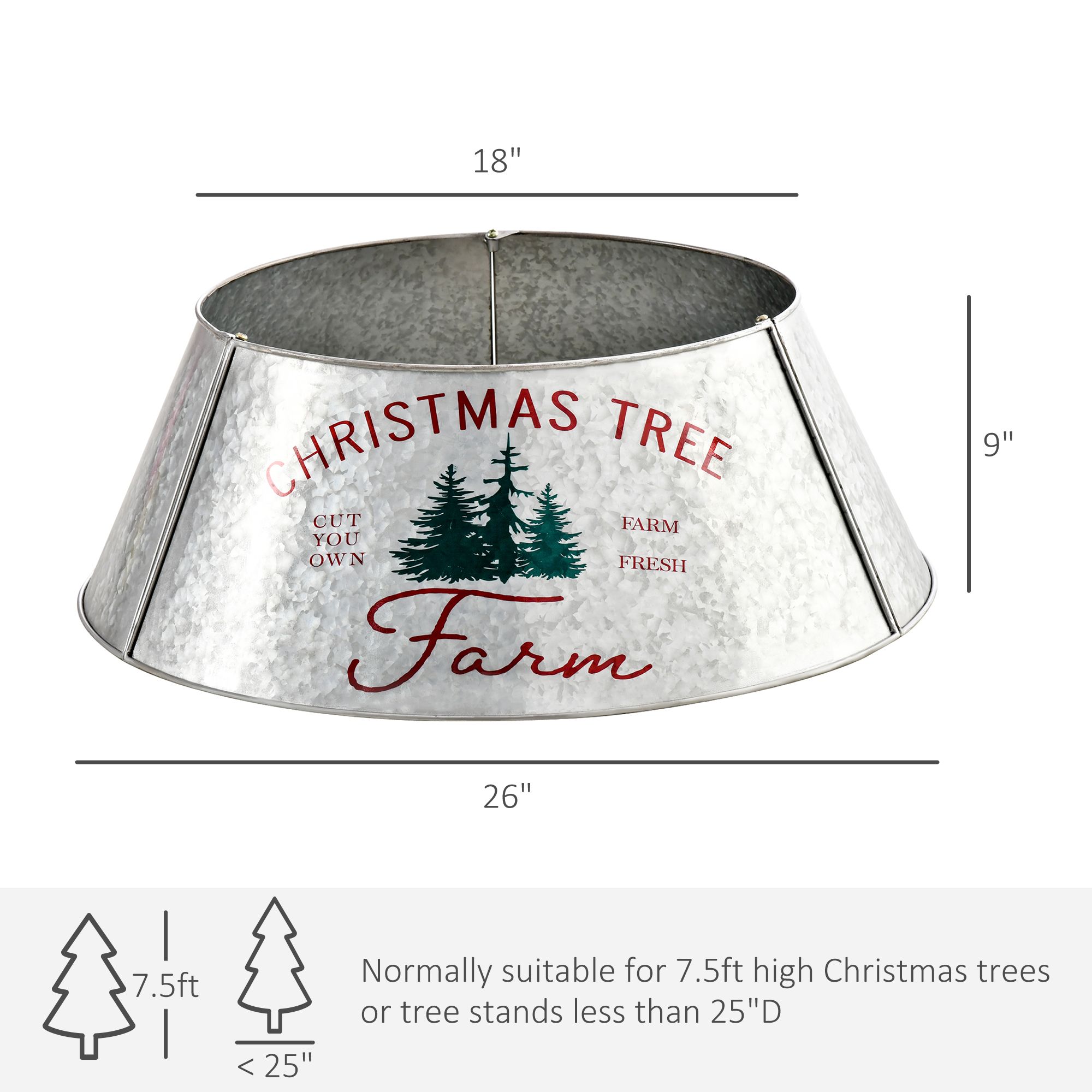 HOMCOM Christmas Tree Collar Steel Tree Ring Skirt Home Xmas Decoration with Christmas Tree Printed, 26" Base, Silver